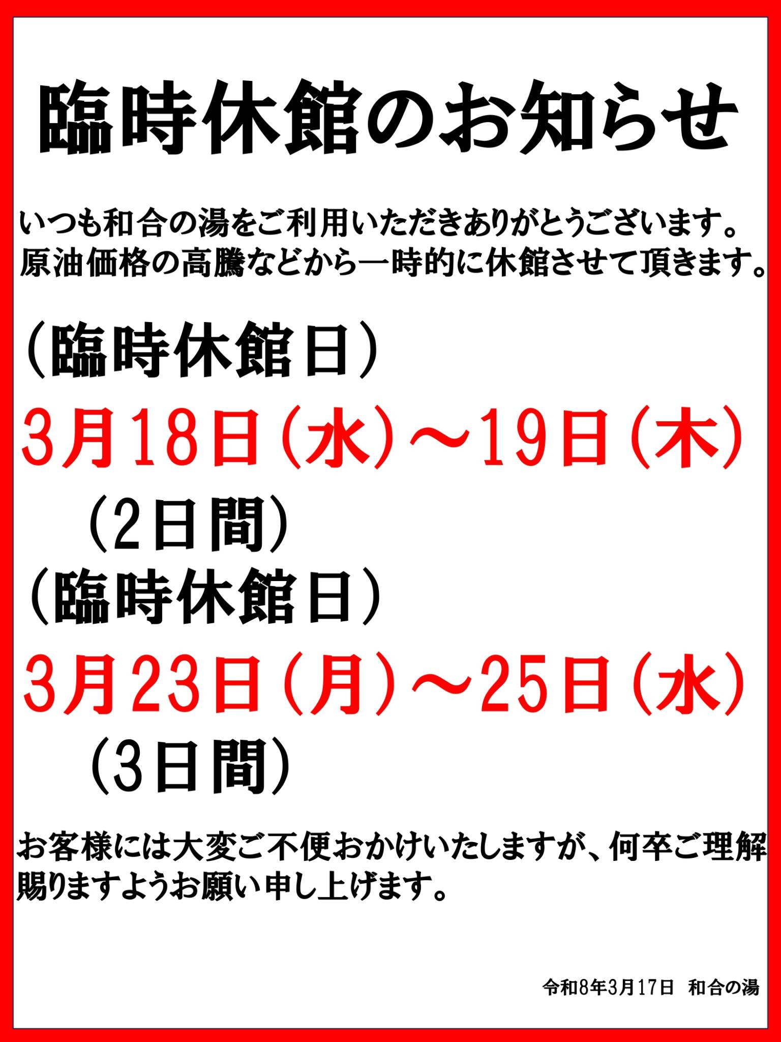 - 定休日
